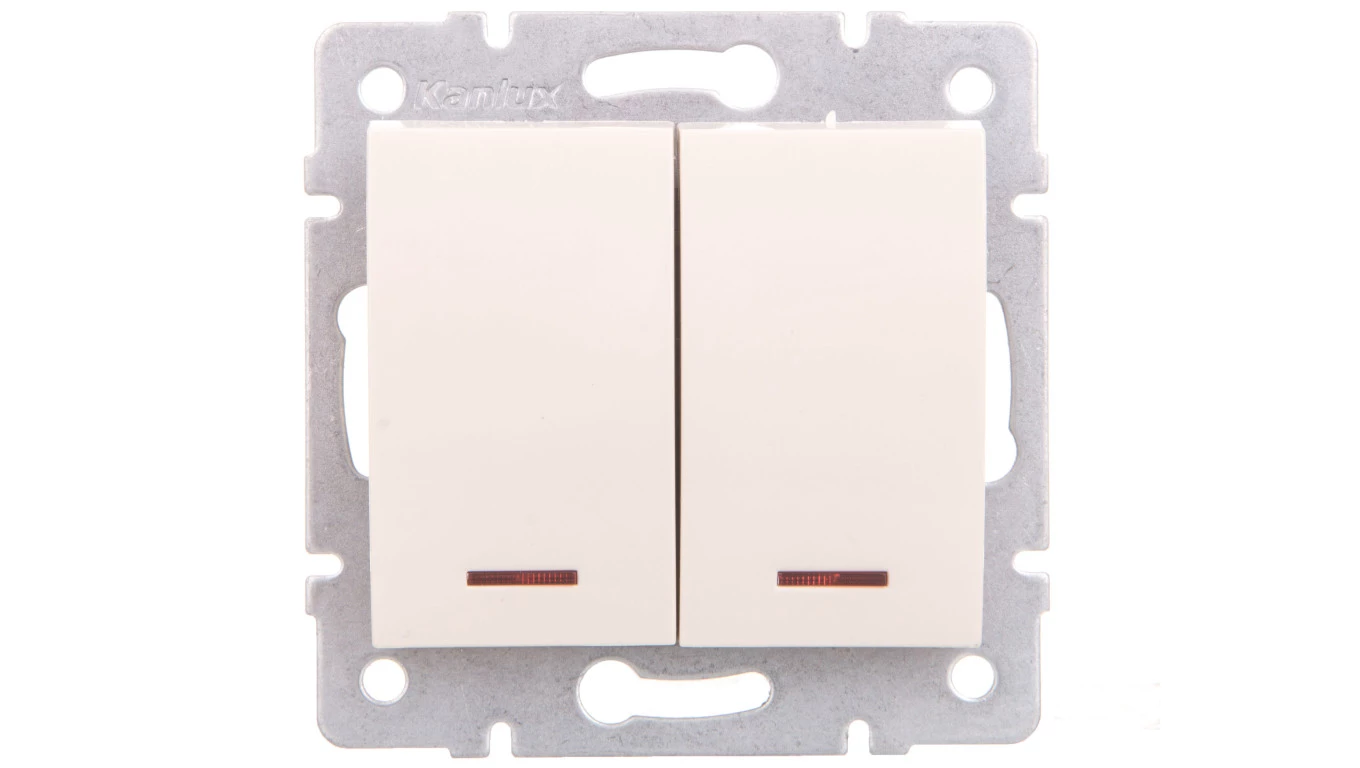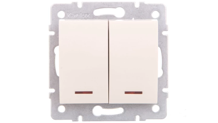 LOGI Łącznik dwugrupowy świecznikowy z LED śrubowy 10AX 250V kremowy 021120103 25139