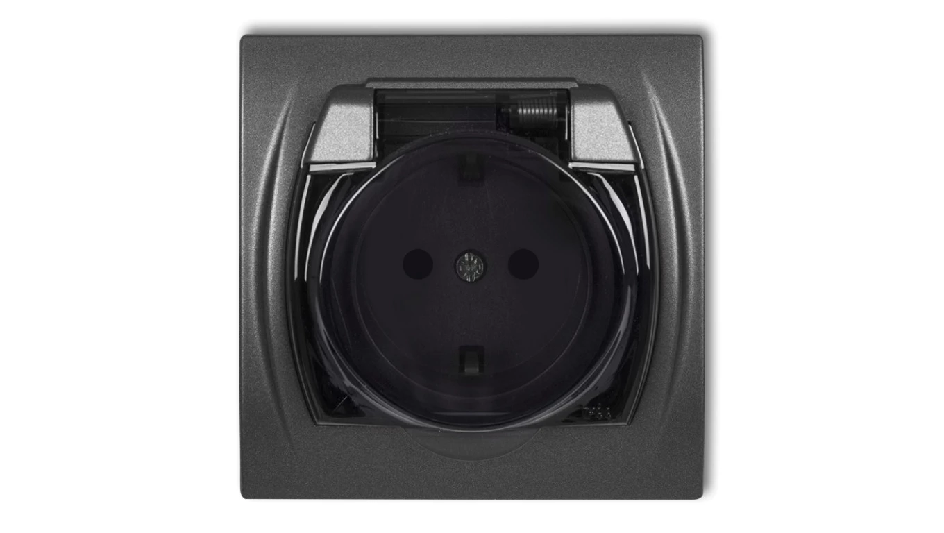 Simon 54 Gniazdo bryzgoszczelne z/u IP44 z klapką transparentną antracyt DGZ1BZ.01/48A