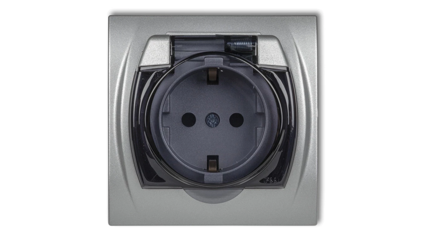 LOGO Gniazdo bryzgoszczelne z/u SCHUKO (klapka dymna) srebrny metalik 7LGPB-1sdp
