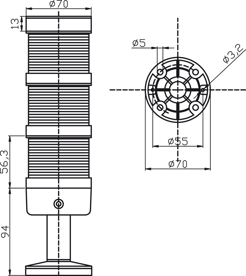 LT70\3-24 KOLUMNA ŚWIETLNA LED FI70 24V DC CIĄGŁY/ BŁYSKOWY/ OBROTOWY CZERWONY/ ŻÓŁTY/ ZIELONY IP65