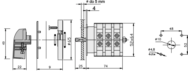 Łącznik krzywkowy 1-2 6P 16A do wbudowania 4G16-71-U