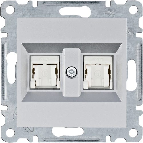 LUMINA Gniazdo komputerowe podwójne RJ45 kat.6 UTP, srebrny o numerze katalogowym WL2162 w kategorii Gniazda teleinformacyjne, multimedialne, Łączniki i gniazda instalacyjne. Produkt wyprodukowany przez markę HAGER, seria LUMINA.