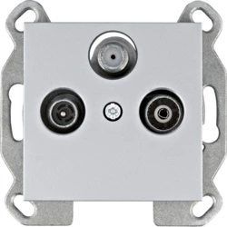 LUMINA Gniazdo RTV-SAT przelotowe, srebrny o numerze katalogowym WL3122 w kategorii Gniazda teleinformacyjne, multimedialne, Łączniki i gniazda instalacyjne. Produkt wyprodukowany przez markę HAGER, seria LUMINA.