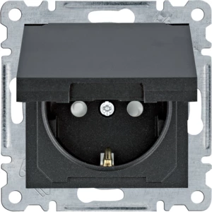 LUMINA Gniazdo SCHUKO, z pokrywą i przesłoną styków, czarny o numerze katalogowym WL1163 w kategorii Gniazda podtynkowe, Gniazda instalacyjne. Produkt wyprodukowany przez markę HAGER, seria LUMINA.