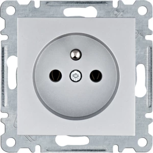 LUMINA Gniazdo zasilające z uziemieniem, 16A/250VAC, srebrny o numerze katalogowym WL1022 w kategorii Gniazda podtynkowe, Gniazda instalacyjne. Produkt wyprodukowany przez markę HAGER, seria LUMINA.