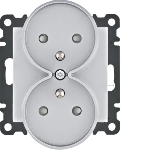 LUMINA Gniazdo zasilające z uziemieniem podwójne z przesłoną styków, 16A/250VAC, srebrny o numerze katalogowym WL1342 w kategorii Gniazda podtynkowe, Gniazda instalacyjne. Produkt wyprodukowany przez markę HAGER, seria LUMINA.