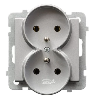 Lumina Gniazdo zasilające z uziemieniem podwójne z przesłoną styków 16A/250VAC srebrne WL1342