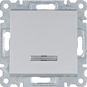 LUMINA Łącznik zwierny z podświetleniem, srebrny o numerze katalogowym WL0412 w kategorii Przyciski podtynkowe jednobiegunowe, Przyciski jednobiegunowe. Produkt wyprodukowany przez markę HAGER, seria LUMINA.