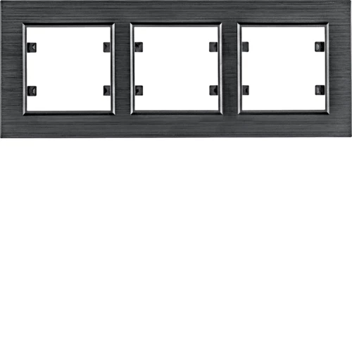 LUMINA Passion Ramka 3-krotna pozioma, aluminium czarne o numerze katalogowym WL9233 w kategorii Ramki, Ramki, klawisze, plakietki. Produkt wyprodukowany przez markę HAGER, seria LUMINA.