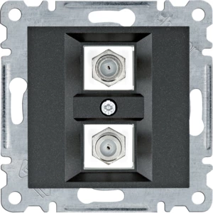 LUMINA Złącze podwójne typu F, czarny o numerze katalogowym WL3263 w kategorii Gniazda teleinformacyjne, multimedialne, Łączniki i gniazda instalacyjne. Produkt wyprodukowany przez markę HAGER, seria LUMINA.