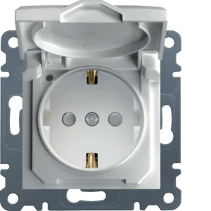 LUMINA Gniazdo SCHUKO, z pokrywą i przesłoną styków, biały o numerze katalogowym WL1160 w kategorii Gniazda podtynkowe, Gniazda instalacyjne. Produkt wyprodukowany przez markę HAGER, seria LUMINA.