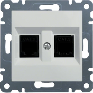 Simon 54 Gniazdo komputerowe podwójne 2xRJ45 kat.6 z przesłoną białe D62.01/11