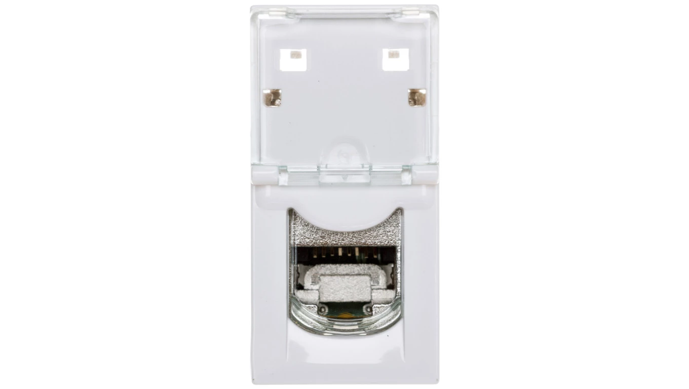 Simon 54 Gniazdo komputerowe pojedyncze RJ45 kat.6 ekranowane z przesłoną białe D61E.01/11