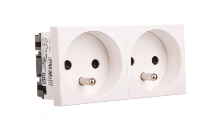 M45 MODUŁ CZYSTA BIEL GNIAZDO 2X Z/U 0° NF ZACISKI SPRĘŻYNOWE 16A 250V