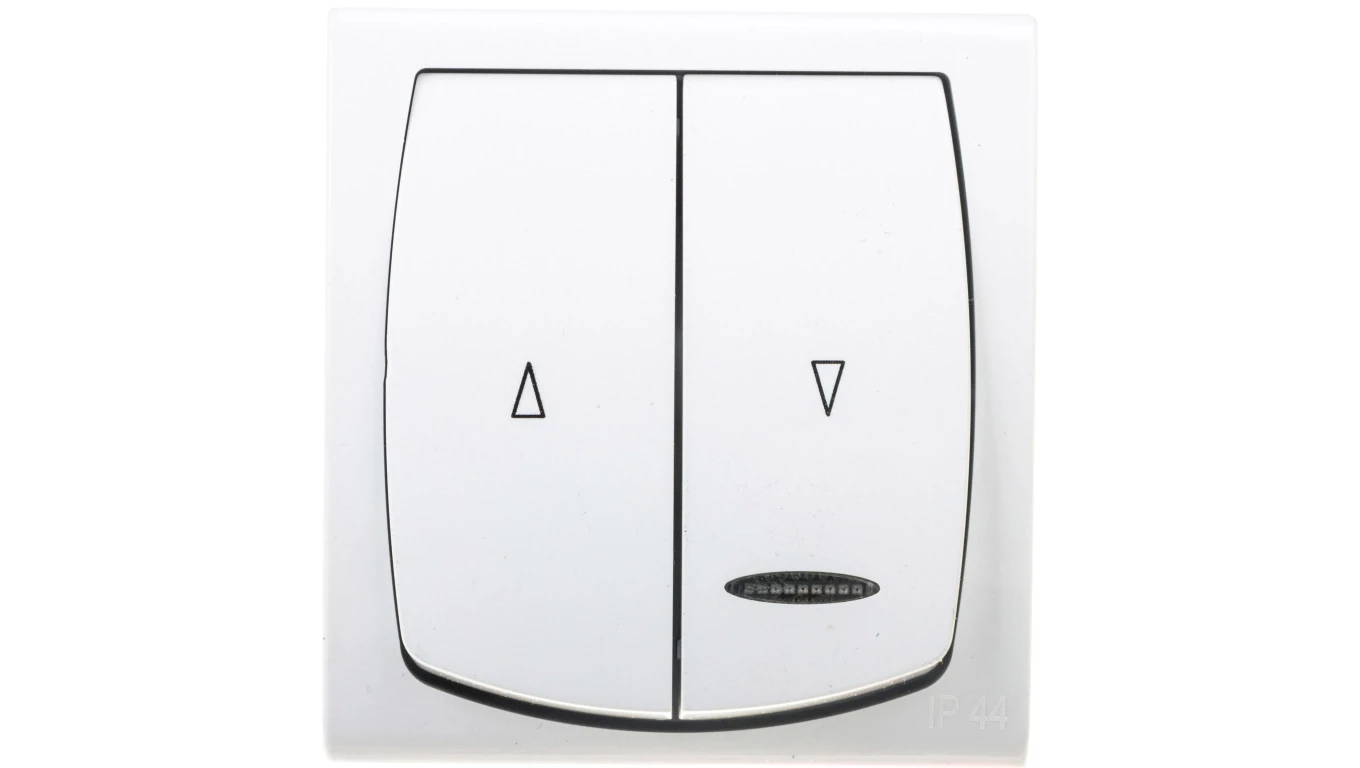 MADERA BIAŁY ŁĄCZNIK NT ŻALUZJOWY "STRZAŁKI" PODŚWIETLANY IP44 ZACISKI ŚRUBOWE 10AX 250V