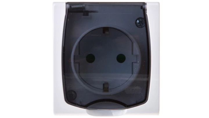 MADERA BIAŁY GNIAZDO NT 1X SCHUKO Z KLAPKĄ DYMNĄ IP44 ZACISKI ŚRUBOWE 16A 250V