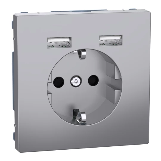 Merten System D Gniazdo pojedyncze SCHUKO + 2XUSB 2.4A 5V stal MTN2366-6036