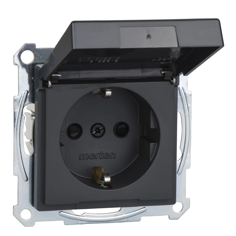 Merten System M Gniazdo pojedyncze Schuko 16A IP20 z przesłonami i klapką antracyt MTN2310-0414