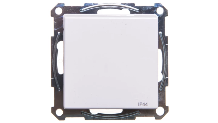 Simon 54 Gniazdo bryzgoszczelne z/u IP44 z przesłoną torów i klapką pełną białe DGZ1BZ.01/11