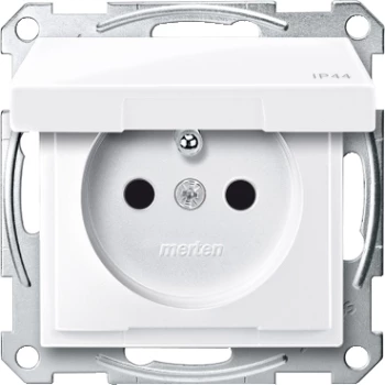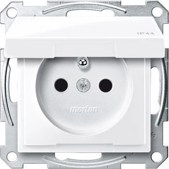 Merten System M Gniazdo pojedyncze z/u 16A IP44 z przesłonami i klapka białe MTN2514-0325