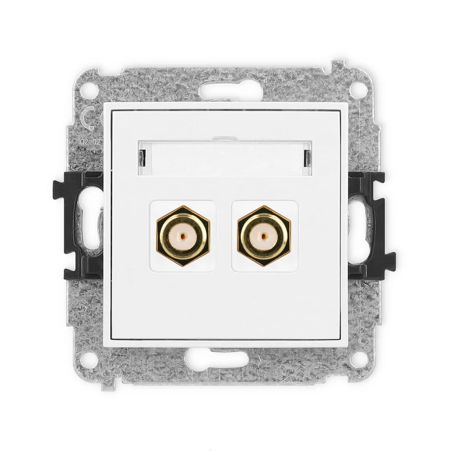 MINI Gniazdo antenowe podwójne typu F (SAT) pozłacany biały MGF-2.1