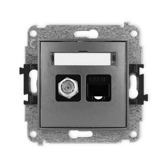 MINI Gniazdo antenowe typu F (SAT) + gniazda komputerowe 1xRJ45 kat. 5e grafitowy 11MGFK-1