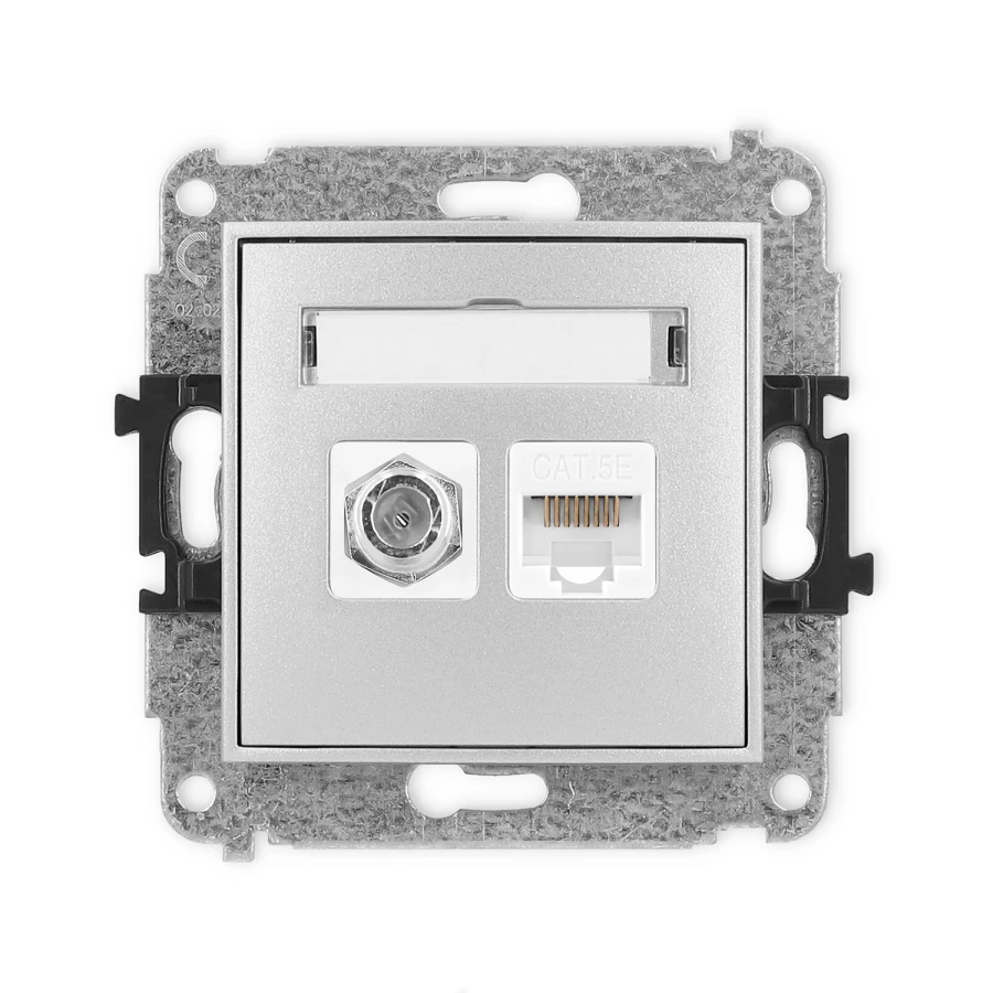 MINI Gniazdo antenowe typu F (SAT) + gniazda komputerowe 1xRJ45 kat. 5e srebrny metalik 7MGFK-1
