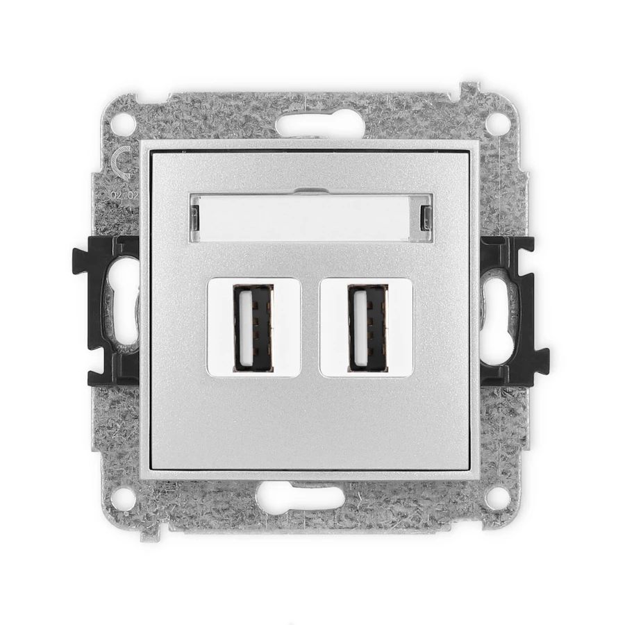 MINI Gniazdo podwójne 2xUSB-AA 2.0 srebrny metalik 7MGUSB-2