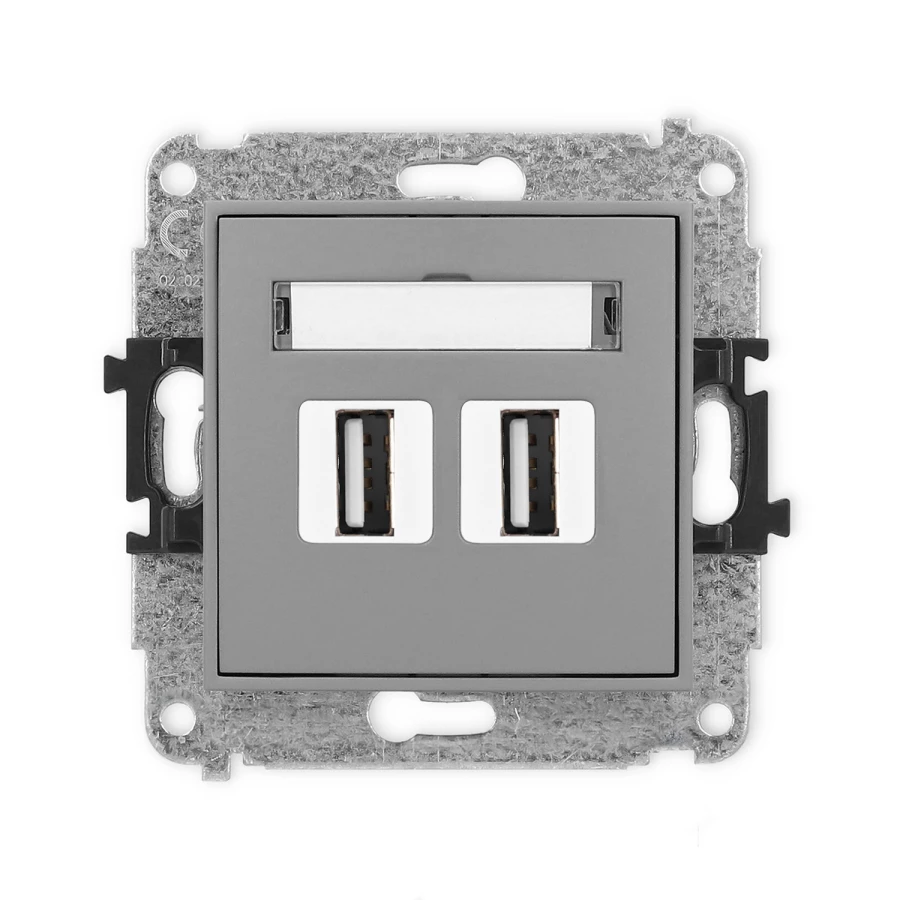 MINI Gniazdo podwójne 2xUSB-AA 2.0 szary mat 27MGUSB-2