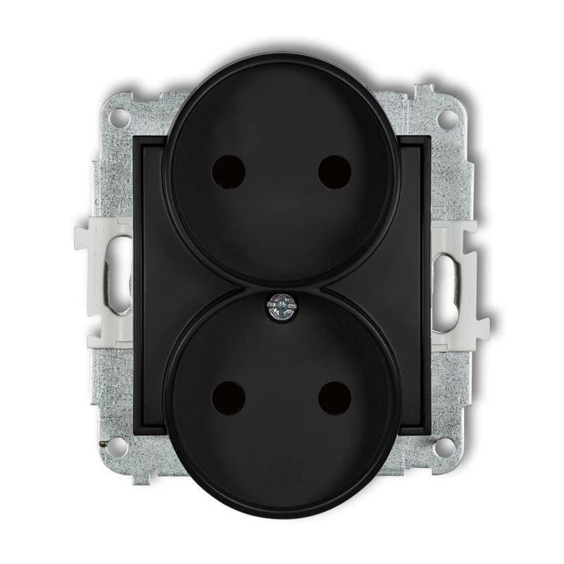 MINI Gniazdo podwójne b/u z przesłonami czarny mat 12MGPR-2p