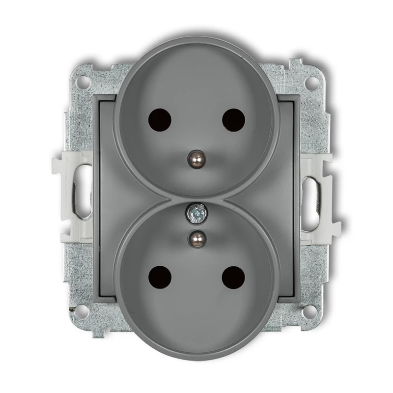MINI Gniazdo podwójne b/u z przesłonami grafitowy 11MGPR-2p