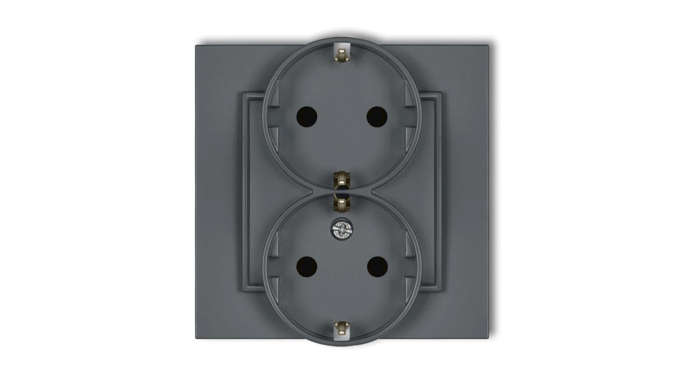 MINI Gniazdo podwójne z uziemieniem SCHUKO 2x(2P+Z) (przesłony torów prądowych) grafitowy mat 28MGP-2sp