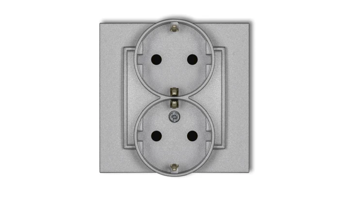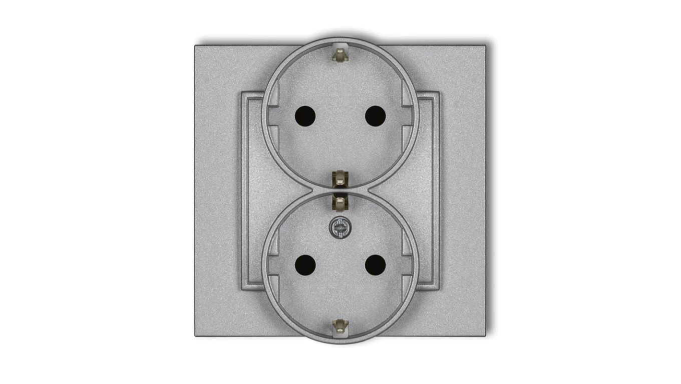 MINI Gniazdo podwójne z uziemieniem SCHUKO 2x(2P+Z) (przesłony torów prądowych) srebrny metalik 7MGP-2sp