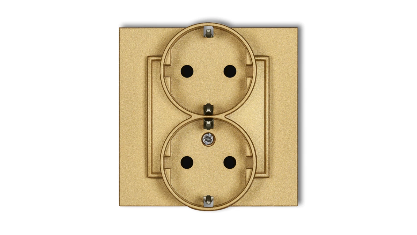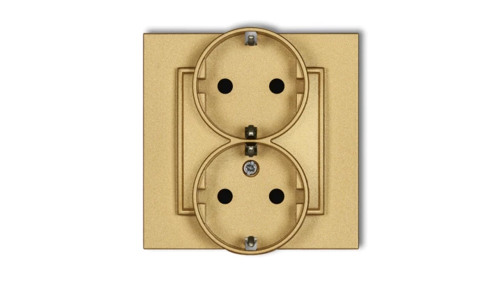 MINI Gniazdo podwójne z uziemieniem SCHUKO 2x(2P+Z) (przesłony torów prądowych) złoty 29MGP-2sp