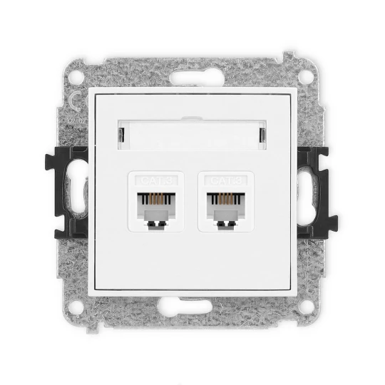 Simon 54 Gniazdo komputerowe podwójne 2xRJ45 kat.6 z przesłoną białe D62.01/11