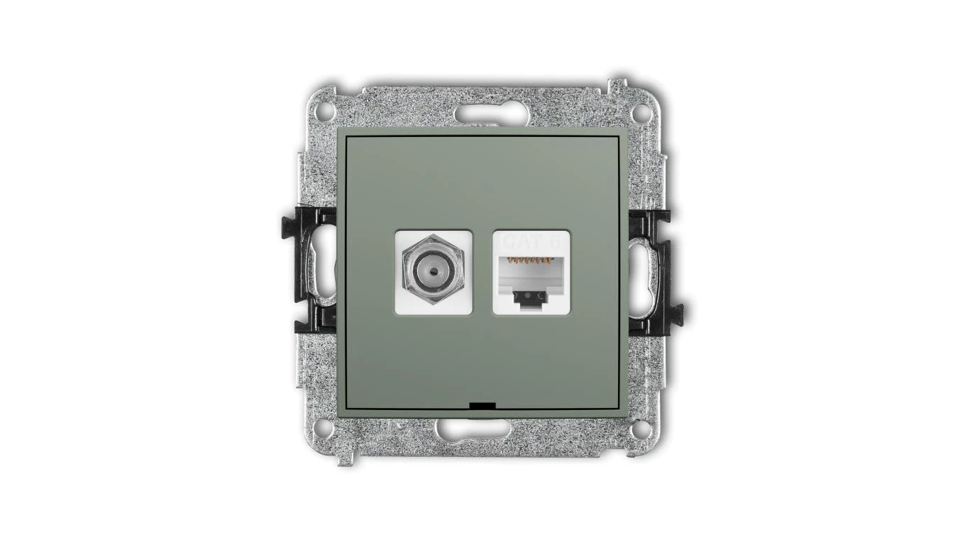 MINI Mechanizm gniazda antenowego poj. typu F (SAT) + gniazda komp. 1xRJ45, kat. 6, 8-stykowy, bez opisu szałwiowy 61MGFKBO-3