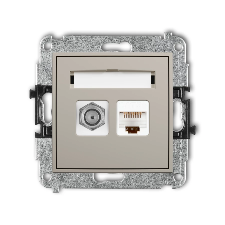 MINI Mechanizm gniazda antenowego poj. typu F (SAT) + gniazda komp. poj. 1xRJ45, kat. 5e, 8-stykowy taupe 60MGFK-1