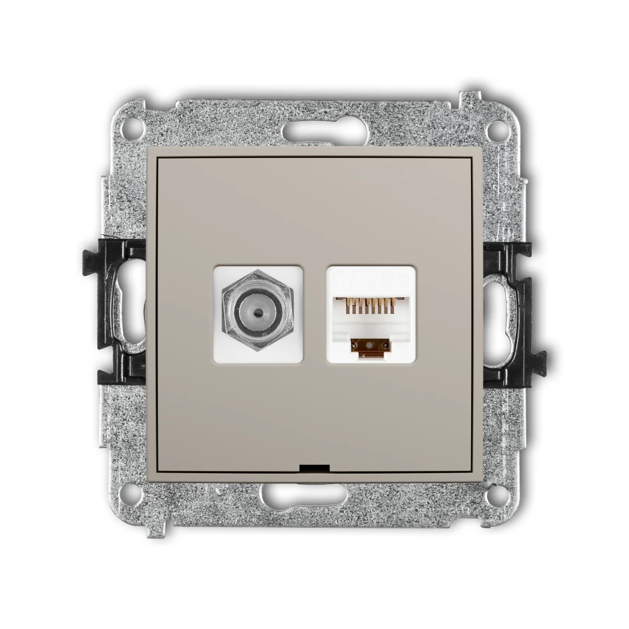 MINI Mechanizm gniazda antenowego poj. typu F (SAT) + gniazda komp. poj. 1xRJ45, kat. 5e, 8-stykowy, bez opisu taupe 60MGFKBO-1