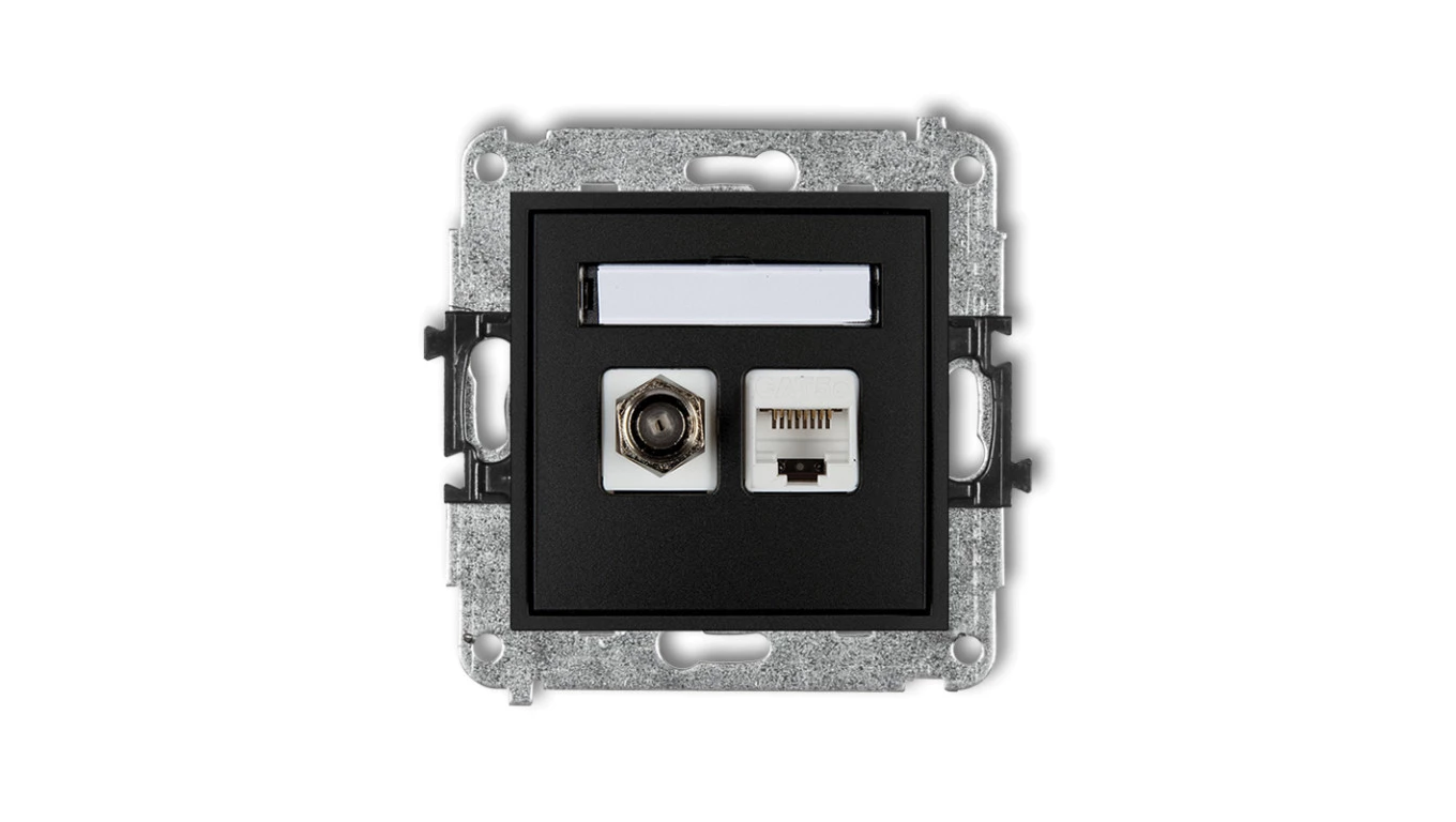 MINI Mechanizm gniazda antenowego poj. typu F (SAT) + gniazda komp. poj. 1xRJ45, kat. 6, 8-stykowy czarny mat 12MGFK-3