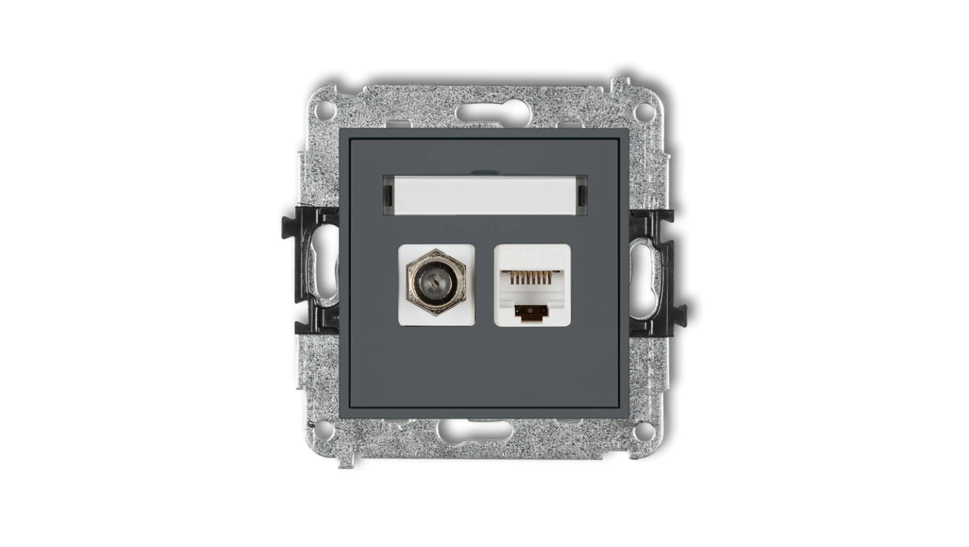 MINI Mechanizm gniazda antenowego poj. typu F (SAT) + gniazda komp. poj. 1xRJ45, kat. 6, 8-stykowy grafitowy mat 28MGFK-3
