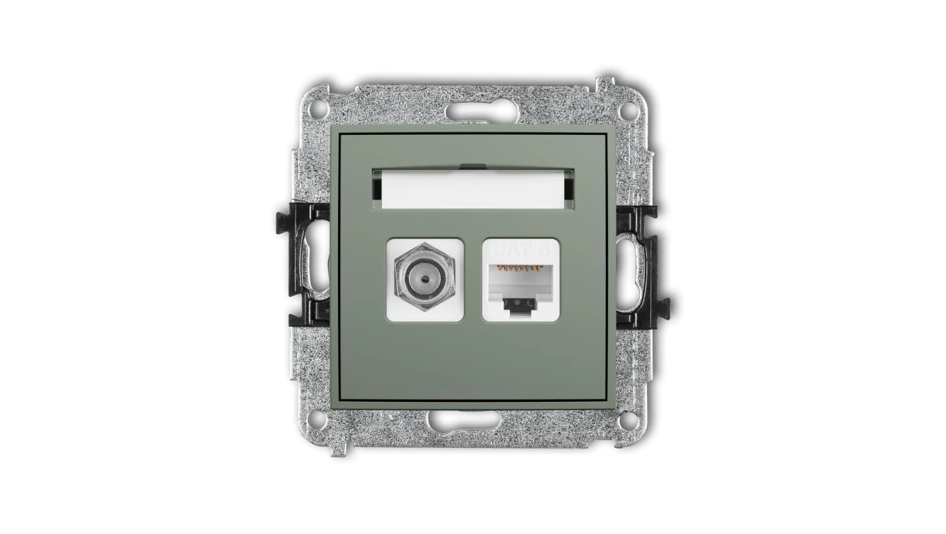 MINI Mechanizm gniazda antenowego poj. typu F (SAT) + gniazda komp. poj. 1xRJ45, kat. 6, 8-stykowy szałwiowy 61MGFK-3