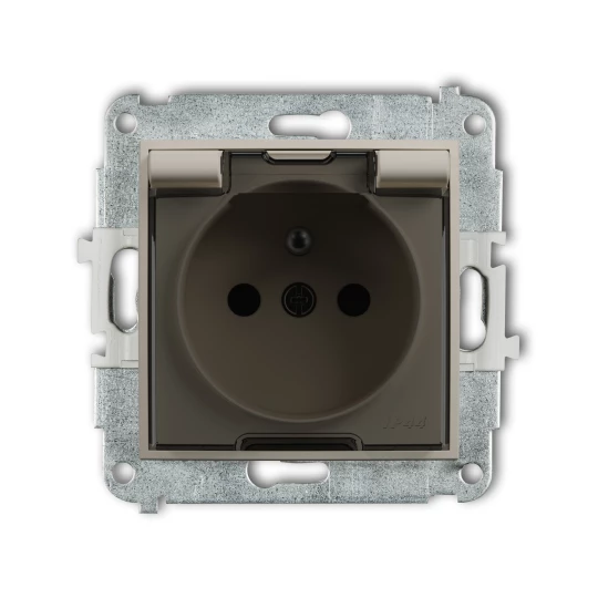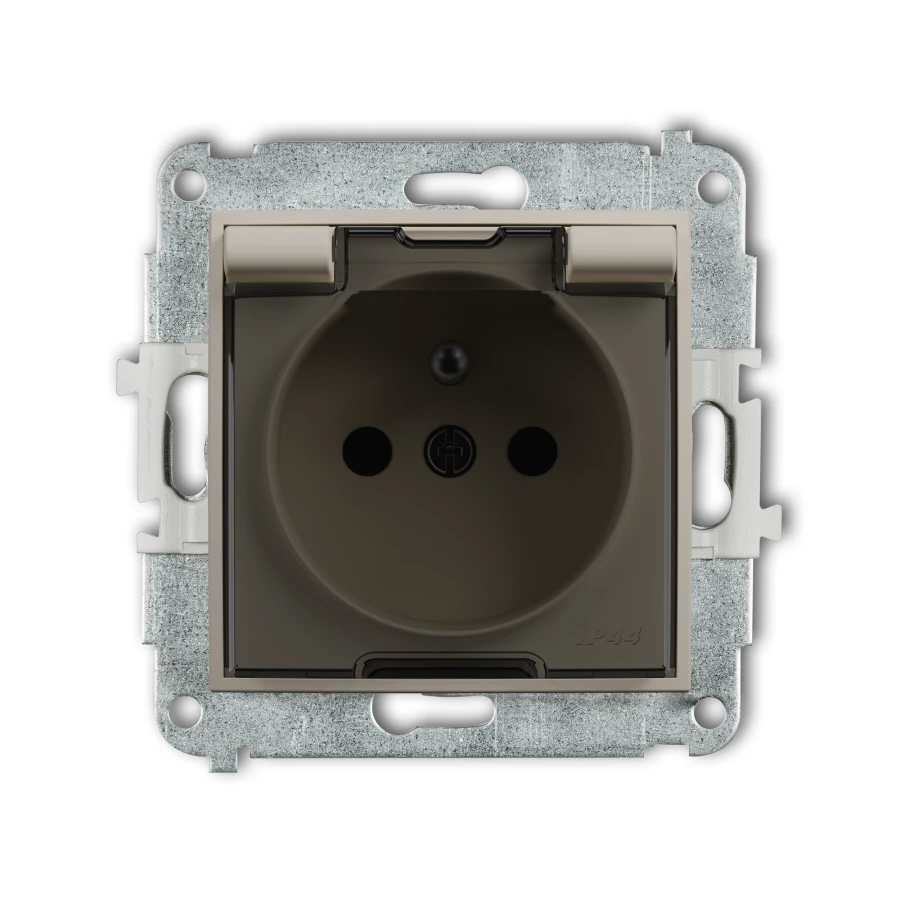 MINI Mechanizm gniazda bryzgoszczelnego z uziemieniem 2P+Z (klapka dymna, przesłony torów prądowych) taupe 60MGPB-1zdp