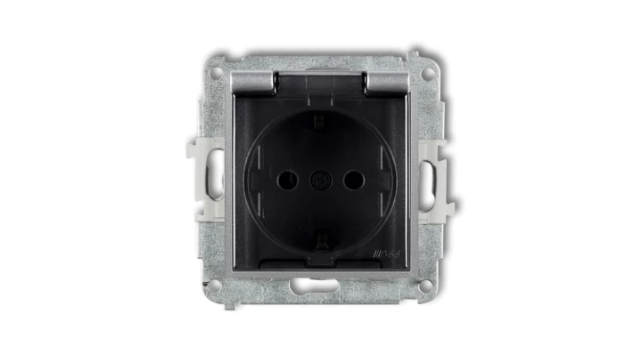 Simon 54 Gniazdo pojedyncze SCHUKO z/u 16A IP20 z przesłoną torów, szybkozłącza, antracyt DGSz1CZ.01/48