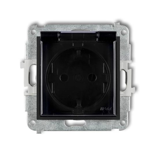 MINI Mechanizm gniazda bryzgoszczelnego z uziemieniem SCHUKO 2P+Z (klapka dymna, przesłony torów prądowych) czarny mat 12MGPB-1s