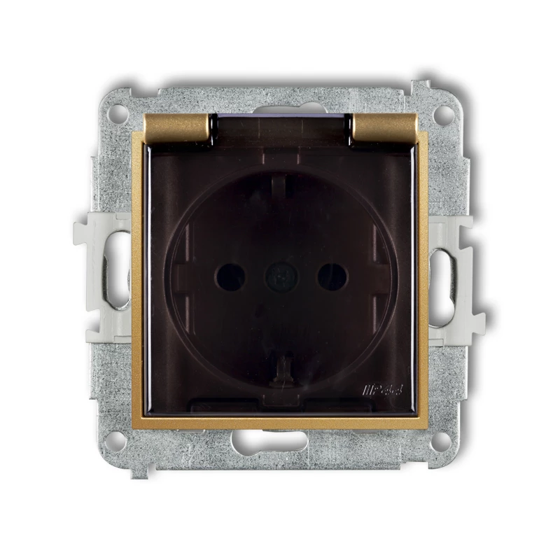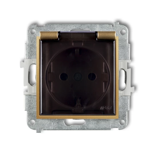 MINI Mechanizm gniazda bryzgoszczelnego z uziemieniem SCHUKO 2P+Z (klapka dymna, przesłony torów prądowych) złoty 29MGPB-1sdp