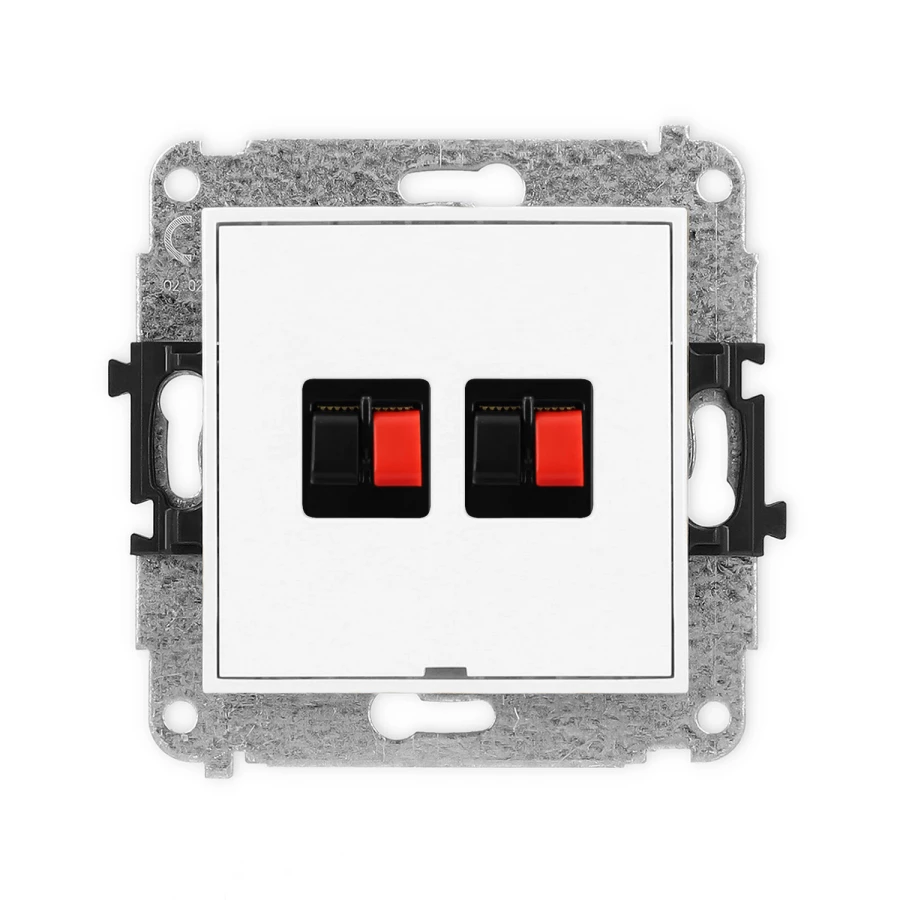 MINI Mechanizm gniazda głośnikowego podwójnego, bez pola opisowego biały mat 25MGGBO-2