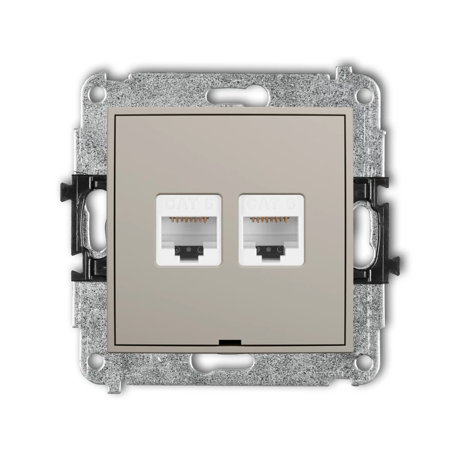 MINI Mechanizm gniazda komputerowego podwójnego 2xRJ45, kat. 6, 8-stykowy, bez pola opisowego taupe 60MGKBO-4