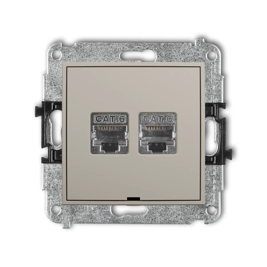 MINI Mechanizm gniazda komputerowego podwójnego 2xRJ45, kat. 6, ekranowany, 8-stykowy, bez pola opisowego taupe 60MGKBO-6