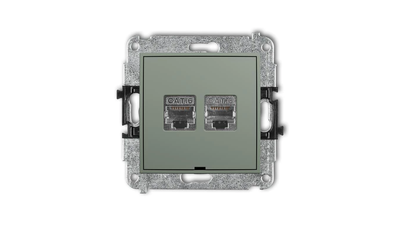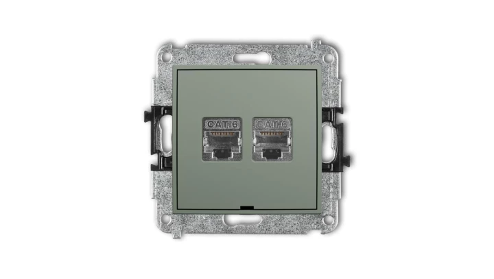 MINI Mechanizm gniazda komputerowego podwójnego 2xRJ45, kat. 6, ekranowany, 8-stykowy, bez pola opisowego szałwiowy 61MGKBO-6
