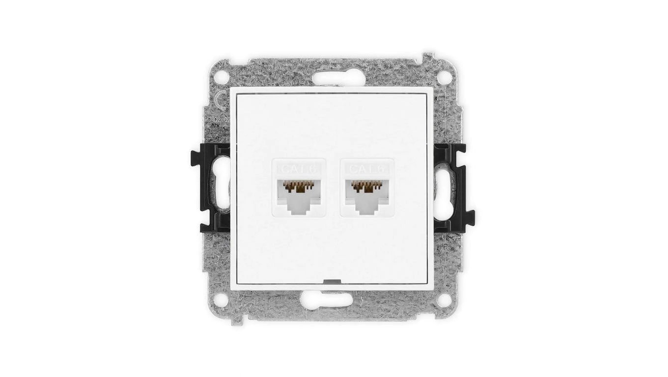 MINI Mechanizm gniazda komputerowego podwójnego 2xRJ45, kat. 6A, 8-stykowy, bez pola opisowego biały mat 25MGKBO-8